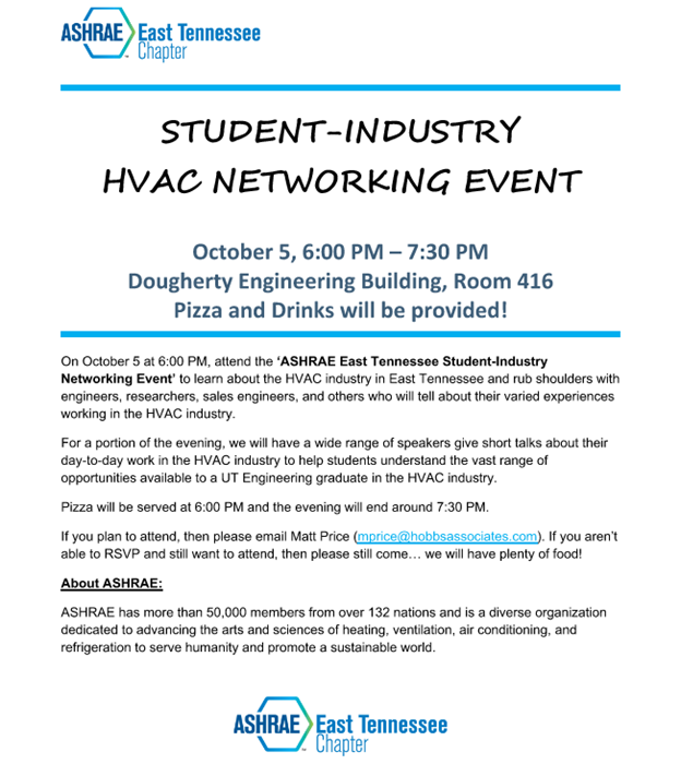 Due to an unforeseen scheduling conflict with Bill McQuade where he has been called to Washington DC and will not be able to get back until Thursday, we will need to cancel our Calhouns on the River ASHRAE President visit event. The East Tennessee Board and I offer our sincerest apology for the late notice, but this information just came to us today. We tried to pivot with a last-minute call to literally every ASHRAE VP and even to the executive VP and Distinguished Lecturers who are close by to see if we could get a replacement. Unfortunately, our efforts were unable to secure any replacement at such a short notice. We even attempted to reschedule to a latter date and either the venue was booked or the Bill’s schedule was not open. We thus decided to cancel this event. We are sorry for any inconvenience this may cause, and we will be reaching out individually to anyone who RSVPed to the event to notify you of this change.